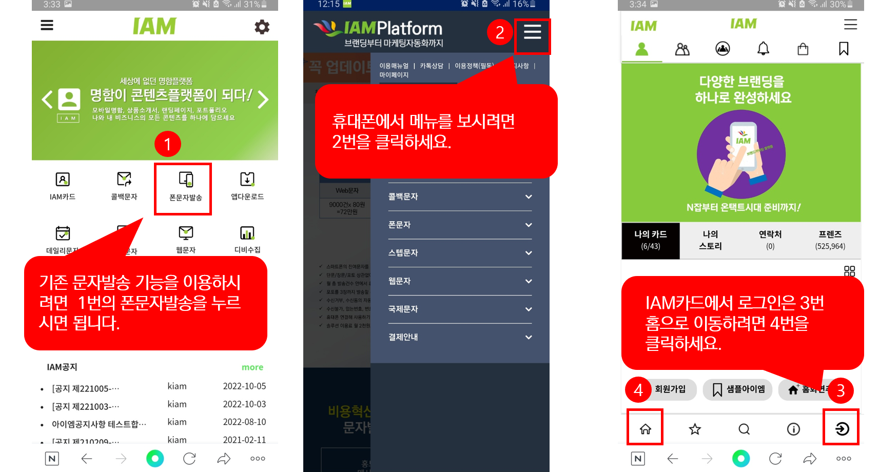 > 새도메인 이동시 IAM앱의 홈으로 접속되므로 거기에서 가고 싶은 매뉴로 이동하세요.